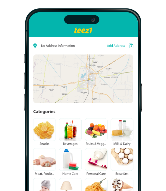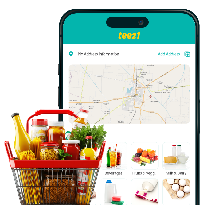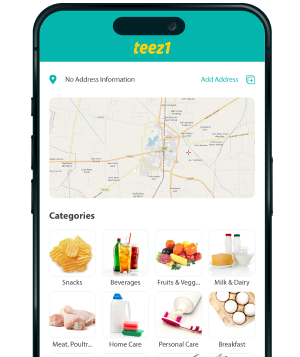 Browse fresh groceries, daily essentials, and food options easily on the Teez1 app.